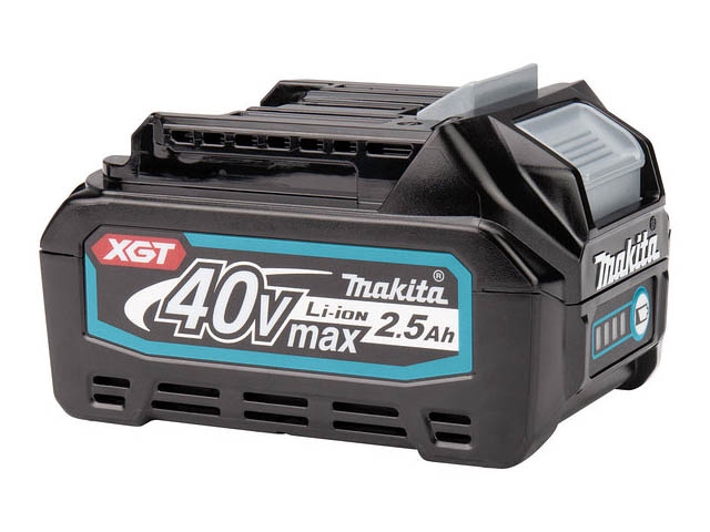 Li-Ion аккумулятор XGT 40В с емкостью 2,5 Ач. Оснащен светодиодным индикатором с уровнем заряда аккумулятора. Зарядное устройство обеспечивает наиболее оптимальную зарядку. Время полной зарядки всего 28 мин. в зарядном устройстве DC40RA. Аккумулятор рассчитан на работу в суровых условиях, имеет прочную конструкцию, а также защиту от пыли и брызг.
