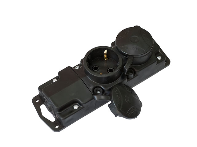 Розетка 2-ая переносная (с/з, 16А, 250В, брызг. защ.) черная, BylectricaХарактеристики: