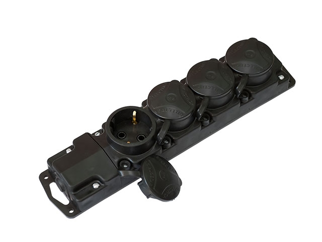 Розетка 4-ая переносная (с/з, 16А, 250В, брызг. защ.) черная, BylectricaХарактеристики: