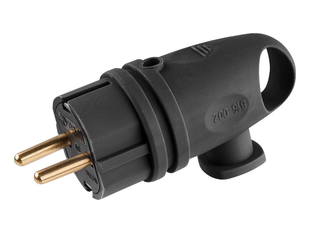 Вилка угловая с ушком (с/з, 16А, 250В) каучук, черная Юпитер (В16-002) (ЮПИТЕР)