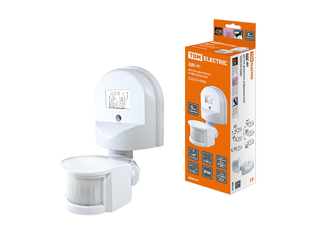 Датчик движения  настенный  ДДС-01 1100Вт, 5-480с, 2-12м, 5+Лк, 180гр, IP44, TDM