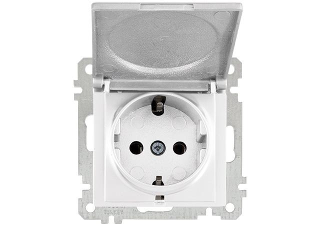 Розетка 1-ая (скрытая, без рамки, с/з, с крышкой) белая, DARIA, MUTLUSAN (16 A, 250 V, IP 20)Характеристики: