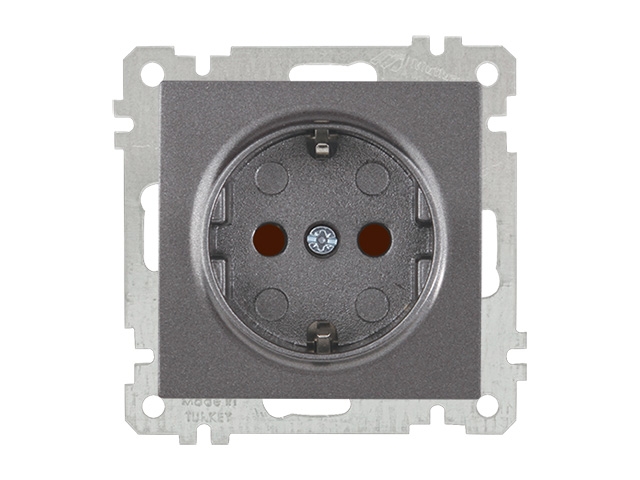 Розетка 1-ая (скрытая, без рамки, с/з, шторки) дымчатая, DARIA, MUTLUSAN (16 A, 250 V, IP 20)Характеристики: