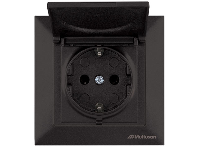 Розетка 1-ая (скрытая, с/з, с крышкой) черная, DARIA, MUTLUSAN (16 A, 250 V, IP 20)Характеристики: