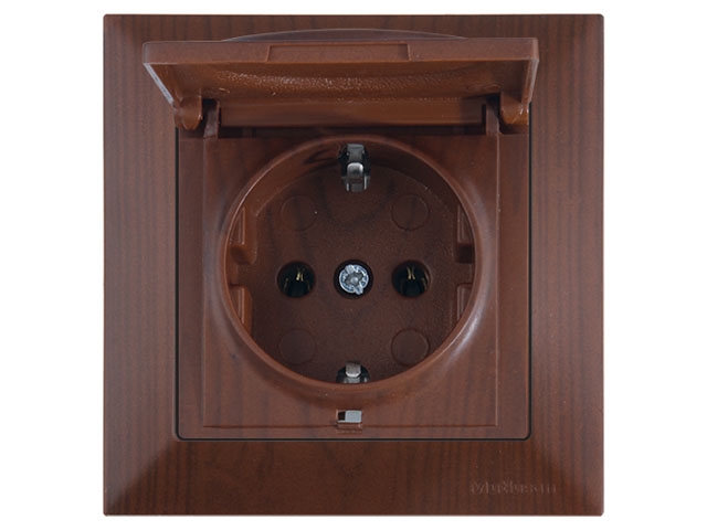 Розетка 1-ая (скрытая, с/з, с крышкой) орех, DARIA, MUTLUSAN (16 A, 250 V, IP 20)Характеристики: