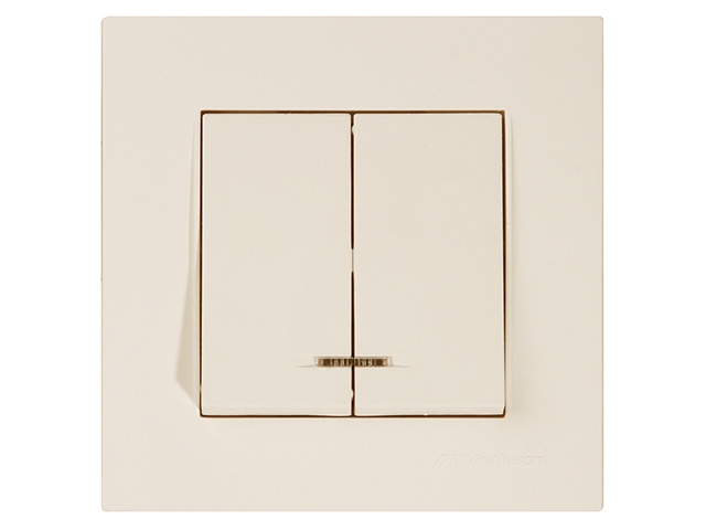 Выключатель 2-клав. (с подсветкой, скрытый, винт. зажим) кремовый, RITA, MUTLUSA...Характеристики:
