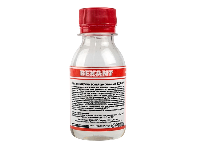 Лак электроизоляционный KO-921 100 мл REXANT предназначен для пропитки и покрытия поверхности изделий (обмоток электрических аппаратов, сухих трансформаторов с изоляцией класса нагревостойкости "Н", узлов электрических машин и аппаратов тропического и морского исполнения, при ремонте грузоподъемных магнитов) с целью повышения нагрево- и влагостойкости, увеличения его механической и электрической прочности и теплопроводности.