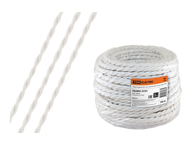Ретро провод "Эко" 2х2,5 витой, белый (50м) TDM