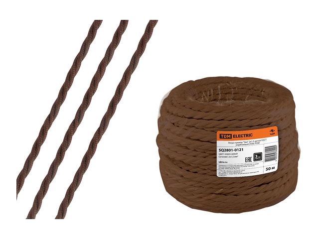 Ретро провод "Эко" 2х2,5 витой, коричневый (50м) TDM