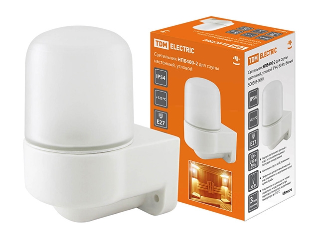 Светильник НПБ400-2 для сауны настенный, угловой, IP54, 60 Вт, белый, TDM (пылеб...Характеристики: