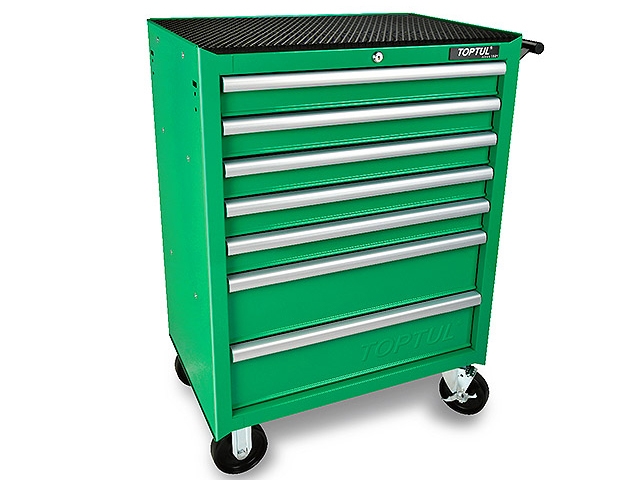 Тележка для инструмента 7 секций серия ECONOMIC TOPTUL (TCAN0701) выполнена из качественного сплава металла с Electro-Power покрытием, которое устойчиво к царапинам и химическим растворам. Выдерживает статическую нагрузку в 200кг. Оснащена колесиками-роликами 5 "x1-1 / 4" PP, два из которых поворотные с замком для фиксирование положения тележки.