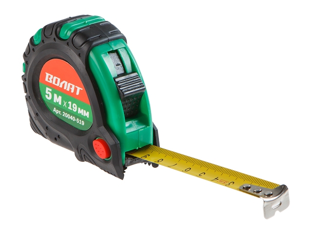 Рулетка 5м/19мм обрезин. корп. ВОЛАТ (быт.) (3 независимых механизма фиксации ленты)Характеристики: