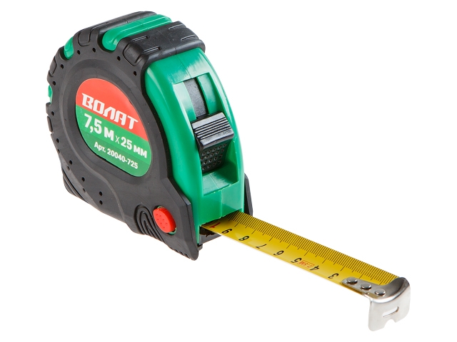 Рулетка 7,5м/25мм обрезин. корп. ВОЛАТ (быт.) (3 независимых механизма фиксации ленты)Характеристики: