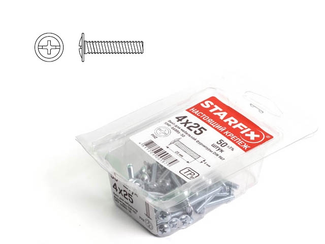 Винт М6х60 мм для мебельной фурнитуры, цинк DIN 967 (40 шт в пласт. конт.) STARFIXХарактеристики: