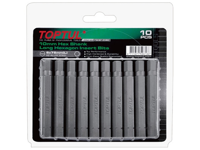 Насадка шестигранник 6мм удлиненн. 75mm 10шт блистер TOPTUL (FSDB1206G)Характеристики: