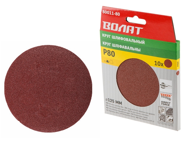 Шлифлист 125мм круг Р100 д/дерева 10шт. ВОЛАТ (круг абразивный шлифовальный)Характеристики: