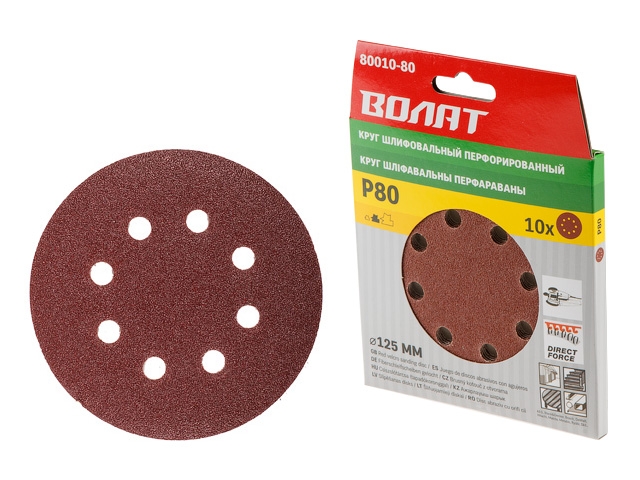 Шлифлист 125мм круг Р100 д/дерева 8 отв. 10шт. ВОЛАТ (круг абразивный шлифовальн...Характеристики: