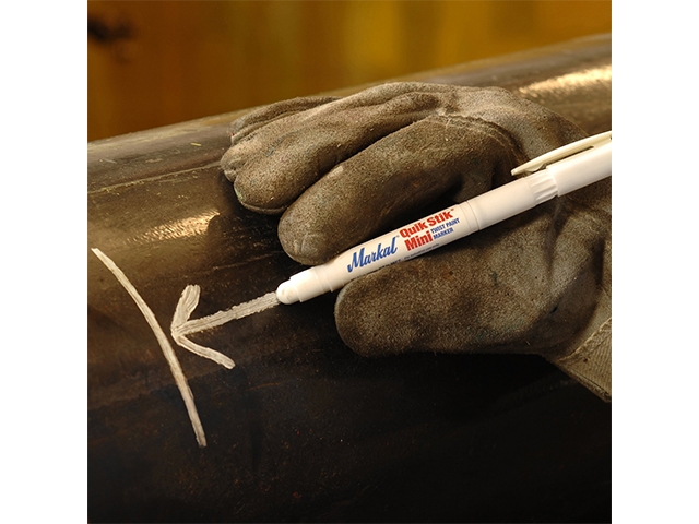 Quik Stik Mini компактный маркер с твердой краской в пластиковом корпусе идеально подходит для тонкой маркировки на гладких и шероховатых поверхностях. Это уменьшенная версия Markal Quik легко помещается в карман или пояс с инструментом. Краска ложиться ровным однородным слоем и не оставляет комков, надписи имеют хорошо видимые линии. Маркировка устойчива к атмосферным осадкам, УФ-излучению, не боится проливов растворителей, бензина, масел и других агрессивных веществ. Корпус из прочного пластика предотвращает стержень маркера от повреждений и обеспечивает длительное использование в промышленных условиях. Дизайн маркера с винтовым механизмом для выдвижения стержня обеспечивает чистоту рук, одежды и инструменты на протяжении всего использования маркера.