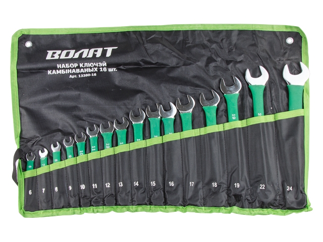 Набор ключей комбинир. 6-24мм 16шт в прорезиненной оплетке ВОЛАТ (на полотне)Характеристики: