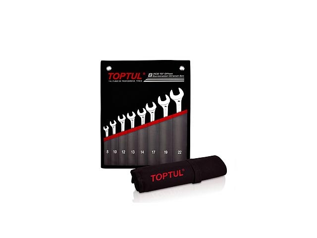 Набор ключей комбинир. 8-22 мм 15° 8 шт , высокопрочные, в сумке (цвет: чёрный) TOPTUL (GPCX0801)Характеристики: