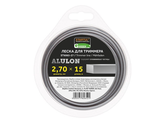 Леска ф 2.7 мм х 15 м квадратн. сеч. ALULON STARTUL GARDENХарактеристики: