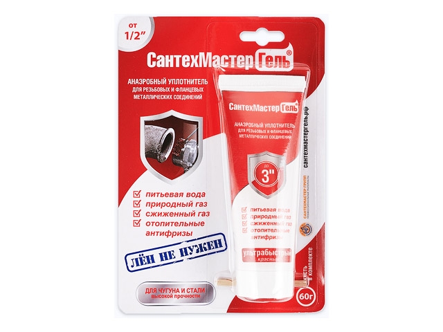 Это ультрабыстрый анаэробный герметик для металлических резьбовых и фланцевых соединений. Образует высокопрочное уплотнение, устойчивое к различным средам: вода, природный и сжиженный газ, бензин, отопительные антифризы и др. СтопМастерГель - уплотнительный материал последнего поколения. Ранее такие материалы применялись только в сфере обороны, космоса и высокотехнологичного машиностроения, но в настоящее время получили широкое распространение благодаря продвижению на открытом рынке.