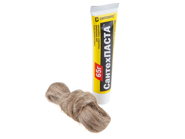 В комплект с пастой входит 14 гр. длинноволокнистого чесанного льна. Для сборки резьбы отсоедините небольшую прядь льна и смажьте её пастой, после чего намотайте полученную прядь по ходу резьбы и соберите соединение. Преимуществом льна является то, что со временем он набухает и делает резьбу герметичнее.