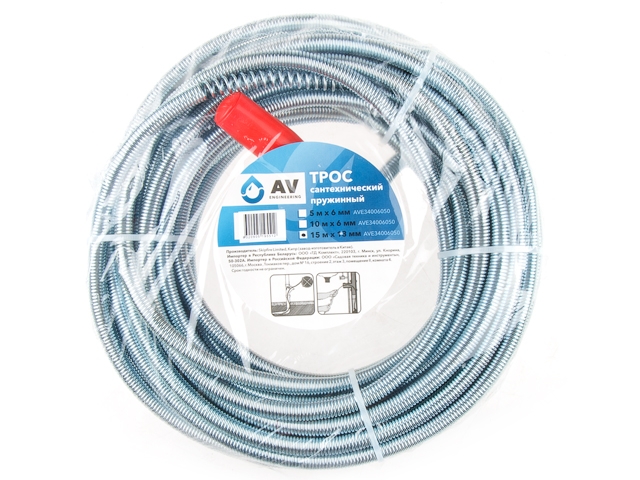 Трос сантехнический пружинный диаметр 13 мм длина 15 м применяется в быту для прочистки засоров в канализации. Имеет полую спиралевидную форму с удобной ручкой на конце. Пружинный трос изготовлен из проволоки, обладает невысокой упругостью и жесткостью спирали.