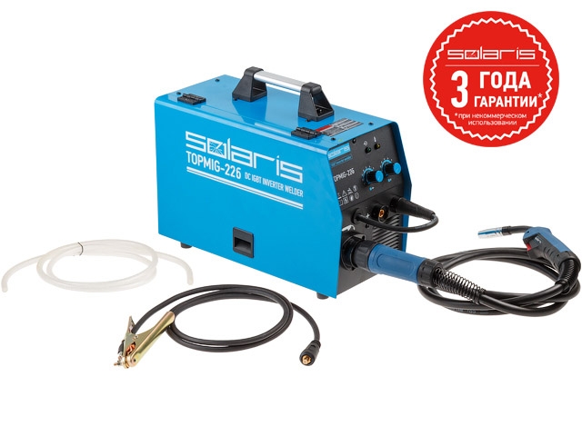 Инверторный сварочный аппарат, позволяющий варить в режиме полуавтоматической MIG/MAG/FLUX сварки. Аппарат оснащен евроразъемом для горелки, возможностью смены полярности для сварки проволокой без газа (FLUX). На выбор представлены 2 комплектации: с горелкой 3 метра (арт.TOPMIG-226WG3) и с горелкой 5 метров (арт.TOPMIG-226WG5).